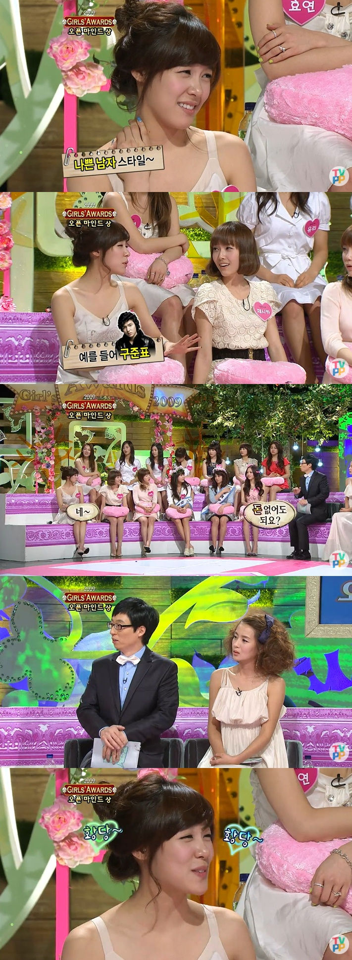 MC 유재석이 "돈이 없어도 되냐"라고 묻자 티파니는 "네 없어도 된다"라고 했고, 유재석이 "나쁘기만 하면 되냐"라고 짓궂게 받아치자 티파니는 "저만 좋아해주면 된다"라며 웃었다.