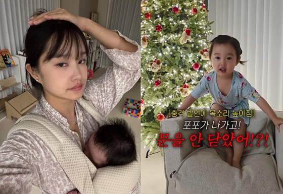 그러자 채유 양은 "문 열 때 포포(둘째 승유 군 태명) 나왔다"고 답해 헤어지니를 놀라게 했다.