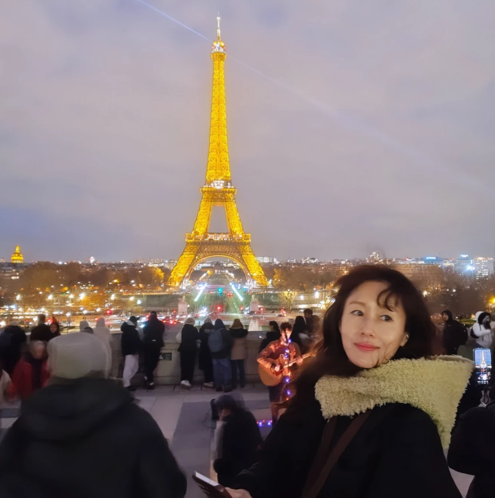 김지수는 14일 자신의 인스타그램에 "낮이든 밤이든 에펠탑은 멀리서 바라보는 게 훨씬 좋다"라는 글과 함께 사진을 공개했다.