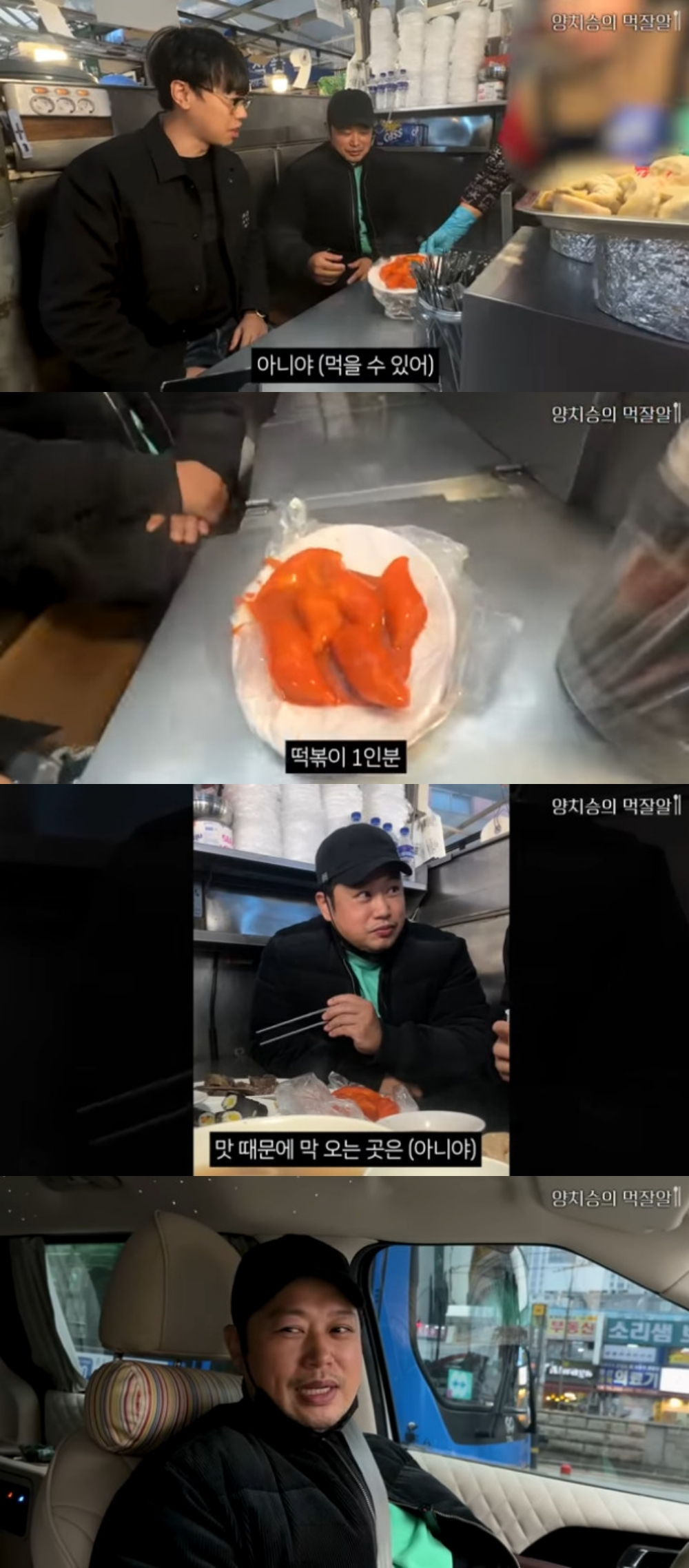 공개된 영상 속 양치승은 광장시장에 방문했고, 그는 "뉴스에는 사람이 없다고 하는데 평일인데도 사람이 너무 많다. 양치승 한 가게에 들어가 떡볶이와 잡채, 어묵, 만두를 1인분씩 주문했다"고 밝혔다.