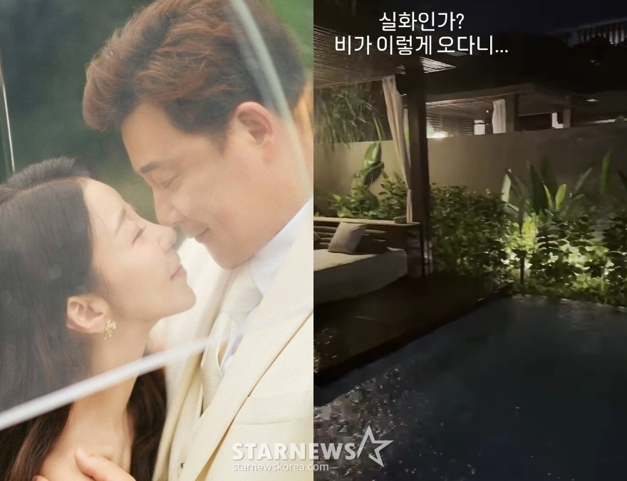 윤정수는 영상을 통해 장대비가 내리는 궂은 날씨에 발리의 모습을 담아 눈길을 끌었다. 윤정수는 "실화인가? 비가 이렇게 오다니"라고 설명을 덧붙였다.
