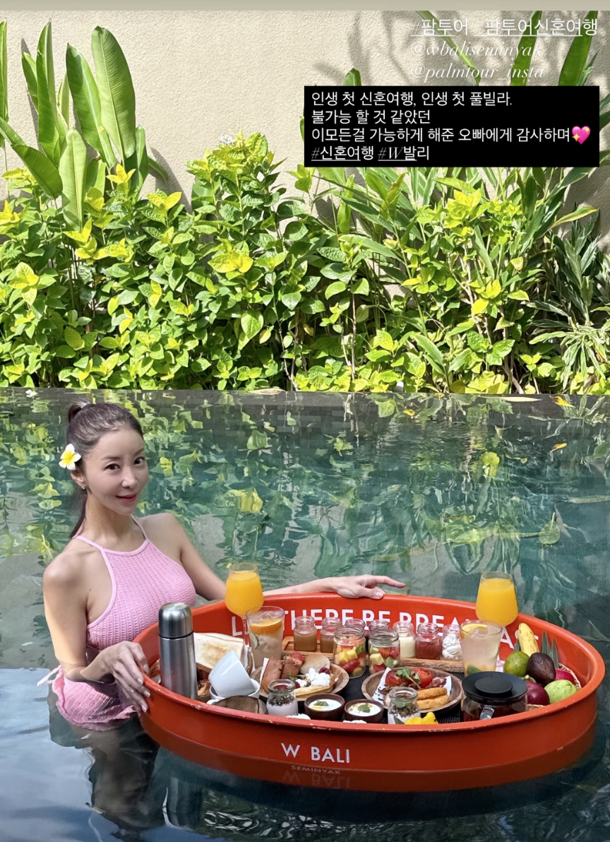 윤정수 아내 원진서가 발리로 떠난 신혼여행 근황을 전했다.