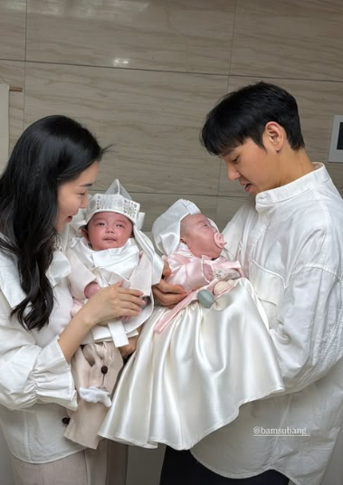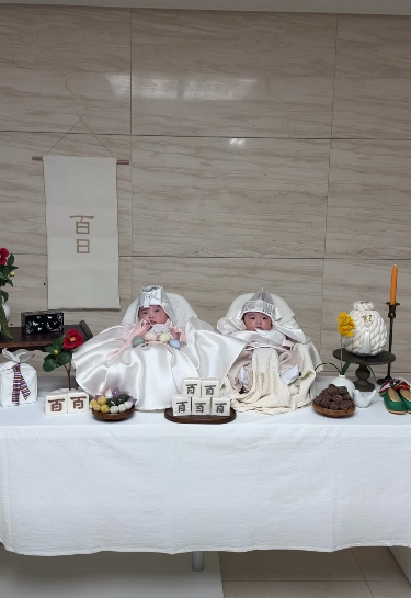 김지혜는 17일 쌍둥이 남매의 백일상 사진과 영상들을 공개했다.
