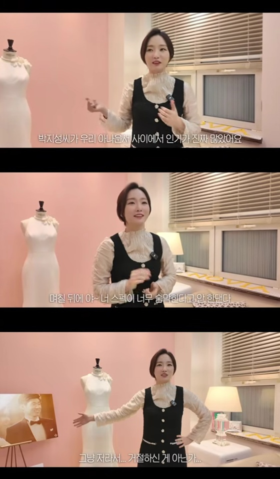드레스숍에서 조수빈은 박지성, 김민지 아나운서 부부의 웨딩화보를 발견했다.