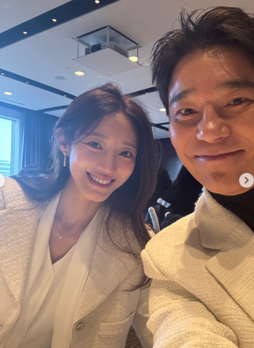 공개된 사진 속 임창정, 서하얀 부부가 하얀색으로 맞춰 입고 카메라를 응시한다. 두 사람이 밝은 미소를 지으며 행사를 즐겼다.
