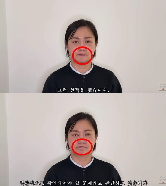영상에는 박나래가 문장마다 입을 꾹 다무는 모습에 대한 분석이 담겼다. 유튜버는 "문장 끝마다 입을 닫는 패턴이 반복된다"고 말했다.
