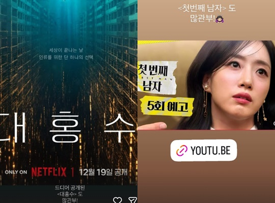 이와 함께 함은정은 남편 김병우 감독의 신작 넷플릭스 영화인 '대홍수' 포스터도 공개했다. 함은정은 "드디어 공개된 '대홍수'도 많관부"라며 남편에 대한 애정을 드러냈다. 이와 함께 함은정은 "'대홍수'는 재난물이지만 SF 장르"라며 설명도 보탰다.