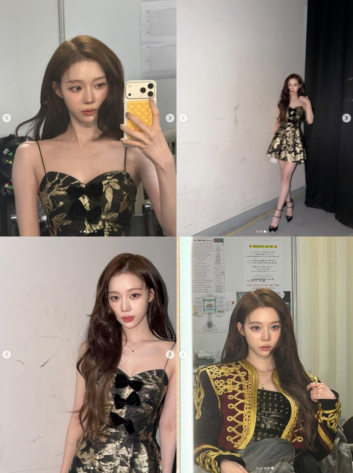 사진 속 윈터는 전날 고척스카이돔에서 열린 '2025 멜론 뮤직 어워드(2025 MMA)' 대기실에서 블랙 앤 골드 컬러의 드레스를 입고 카메라를 응시하고 있는 모습. 긴 머릿결을 자연스럽게 늘어뜨린 채 셀카를 남긴 윈터는 인형 같은 비주얼과 한층 성숙해진 분위기로 시선을 사로잡았다.