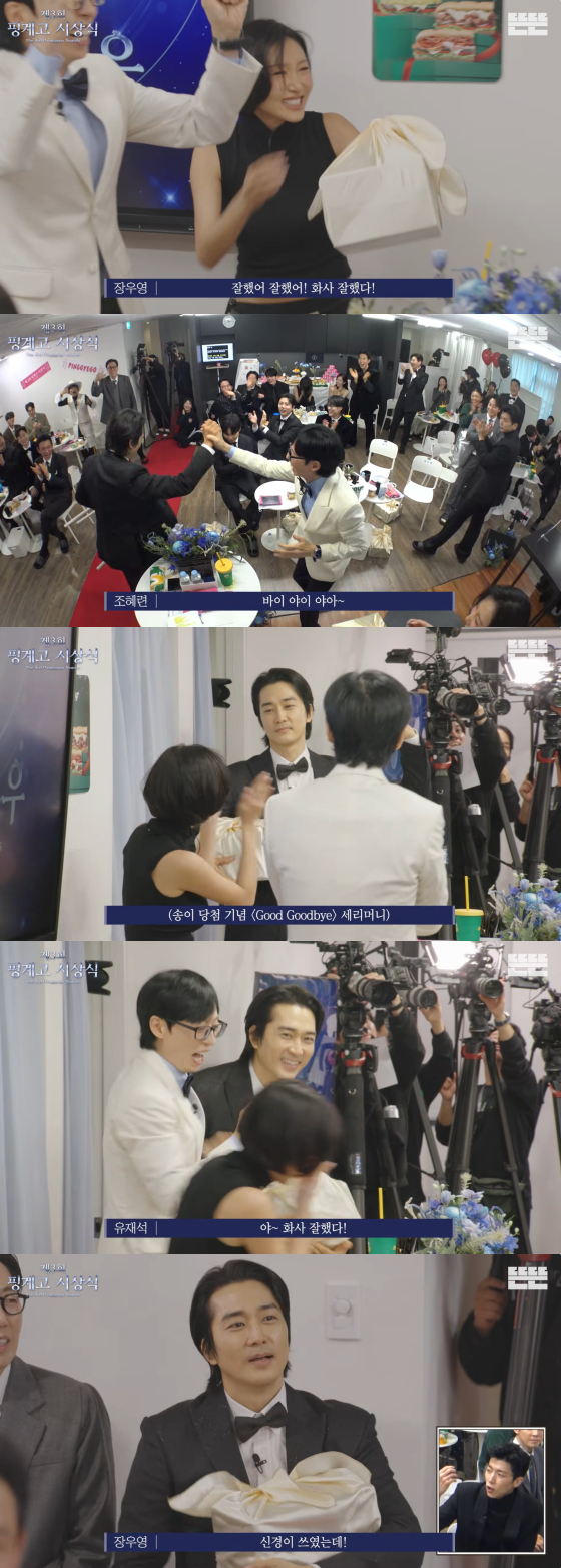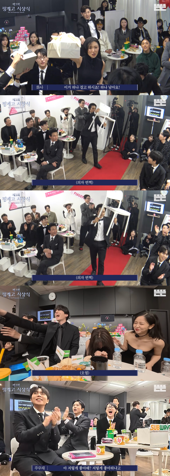 유튜브 채널 뜬뜬에는 21일 '제3회 핑계고 시상식' 영상이 게재됐다.