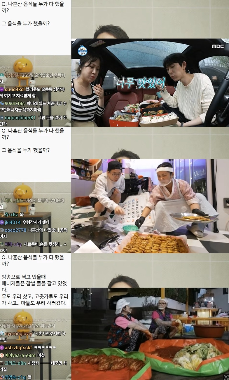이진호는 "'나혼산'에 나온 음식들이 많다. 매번 푸짐하게 만들어서 지인들을 대접했다. 그 음식들은 누가 했을까. 음식을 만드는 과정 속에서도 매니저들의 도움이 있었다는 주장이 있었다. '나혼산'에서 코드 쿤스트의 도시락을 만들 때가 있었다. 방송에서는 코쿤 도시락을 주는 내용은 나왔지만 만드는 장면은 안 나왔다. 매니저들이 코쿤 도시락을 쌀 때도 본인들이 했다고 하더라. 명절에 전 부치는 장면도 나왔었는데 매니저들이 1박 2일로 전날부터 옆에서 부치고 있었다더라. 김장할 때도 방송으로 찍고 있을 때 매니저들은 뒤에서 찹쌀 풀을 갈고 있었다더라. 무도, 고춧가루도, 마늘도 매니저들이 사러 갔다더라. 이런 내용들이 방송에는 담기지 않았지만 본인들은 이런 일들을 분명하게 했다는 거다"라고 주장했다.