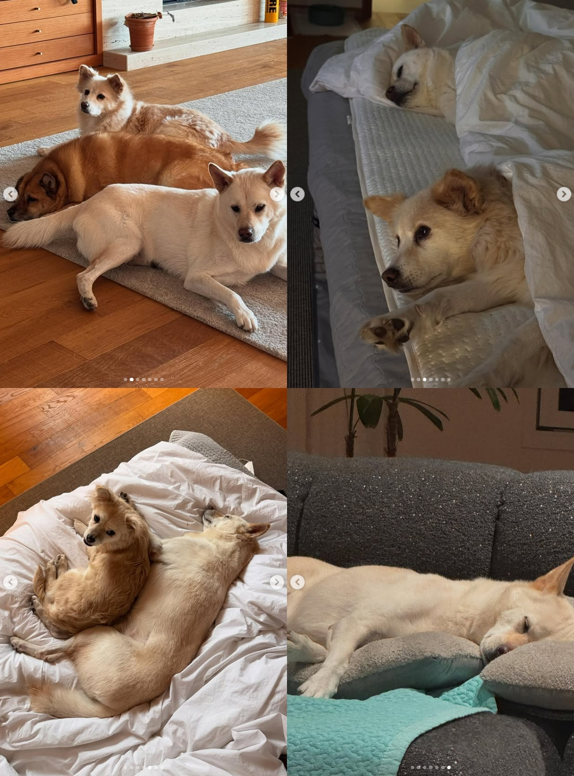 이상순이 업로드한 사진에는 해당 집의 거실과 방에서 반려견들이 편안하게 낮잠을 자고 있다. 또한 반려견 두 마리와 침대에서 함께 자고 있는 이효리의 모습도 찾아볼 수 있다. 깔끔하면서도 세련된 인터리어도 눈길을 끈다.