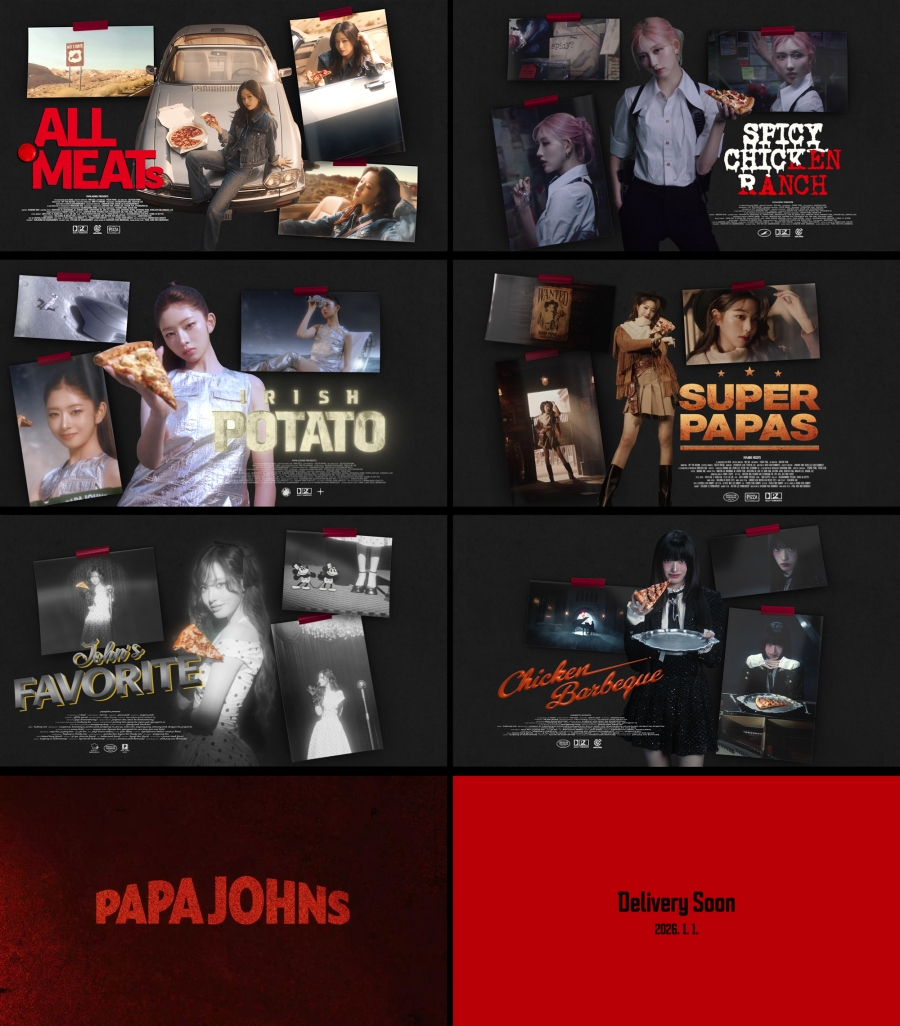 신규 CF는 '아메리칸 프리미엄 피자'라는 파파존스 고유의 아이덴티티를 기반으로, 아이브와 함께 6가지 베스트 피자를 6편의 아메리칸 장르로 풀어낸 시네마틱 시리즈로 선보인다. CF 본편은 2026년 1월 1일 새해 첫날 공개될 예정이다.