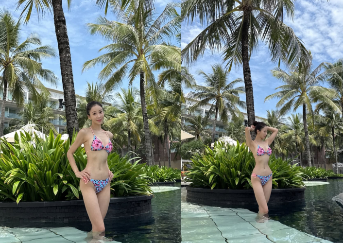 원진서는 24일 발리 신혼여행 사진들을 공개하며 자신의 비키니 자태를 뽐냈다.
