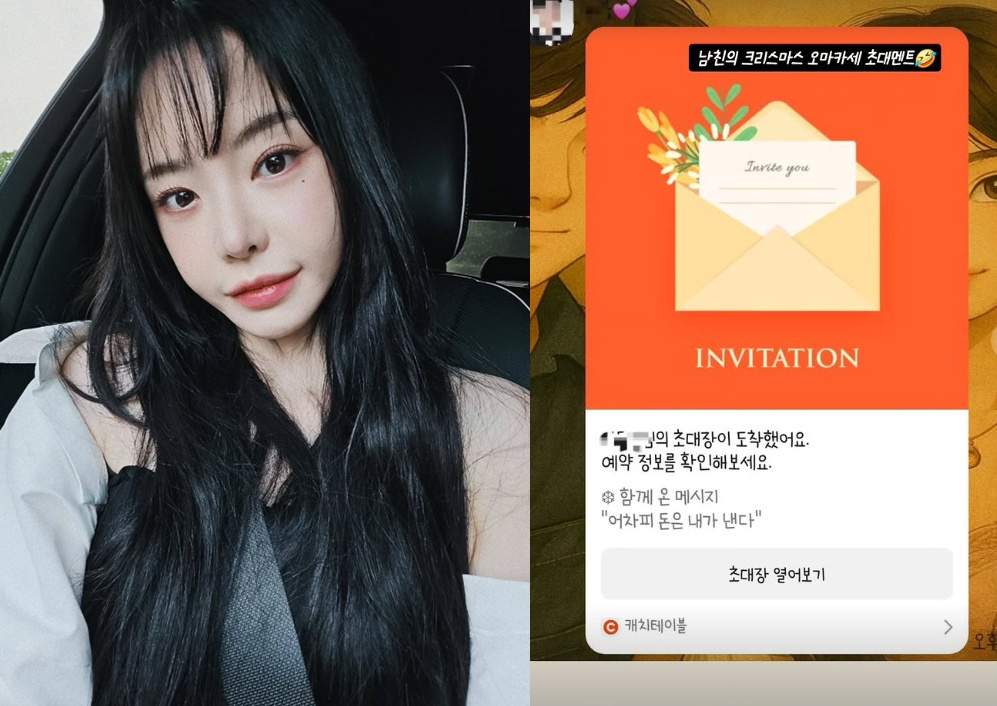 서유리는 지난 24일 자신의 인스타그램 스토리를 통해 "남친의 크리스마스 오마카세 초대 멘트"란 글과 함께 사진을 게재했다.