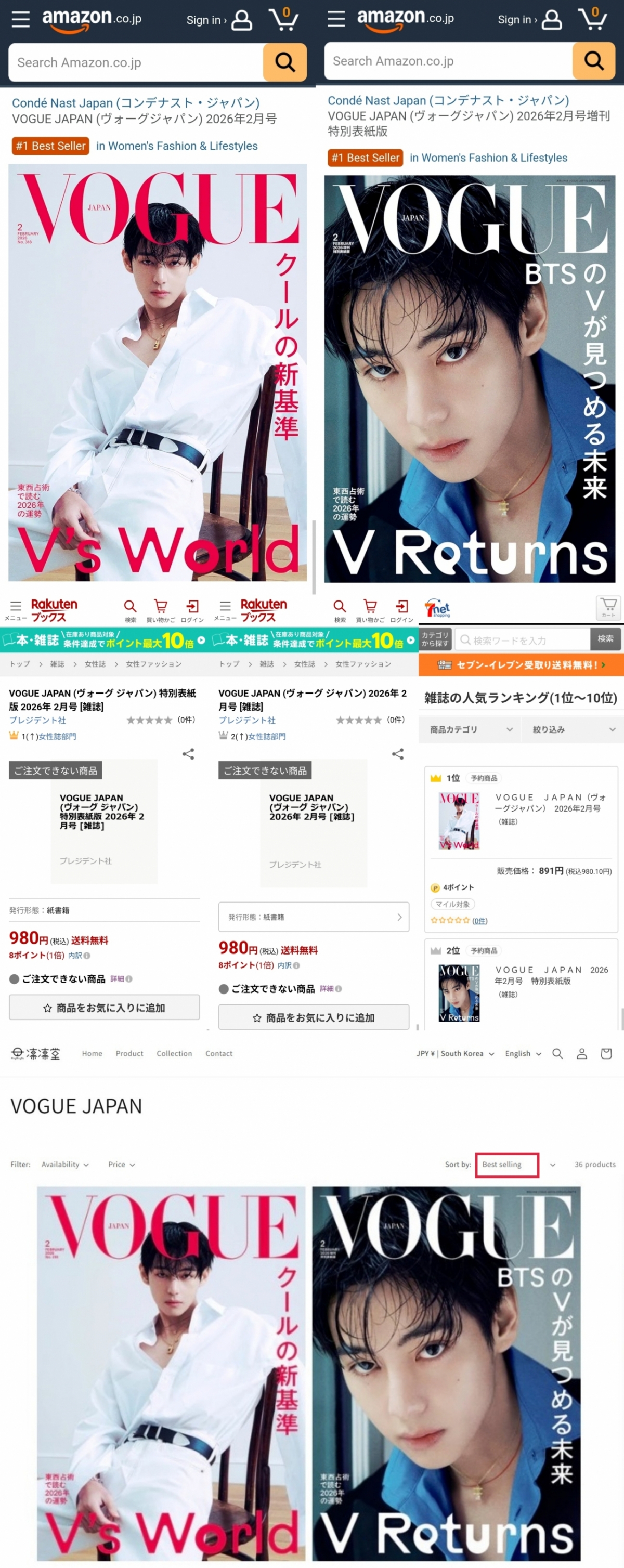 방탄소년단(BTS) 뷔가 커버를 장식한 '보그 재팬'이 예약판매임에도 품절을 기록하며 독보적인 인기를 입증했다.