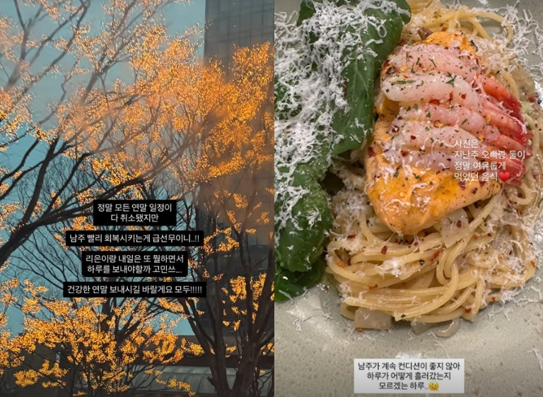 이후 이다은은 "정말 모든 연말 일정이 다 취소됐지만 남주 빨리 회복시키는 게 급선무. 리은이랑 내일은 또 뭘하면서 하루를 보내야할까 고민"이라며 "남주가 컨디션이 좋지 않아 하루가 어떻게 흘러갔는지 모르겠는 하루"라고 걱정했다.