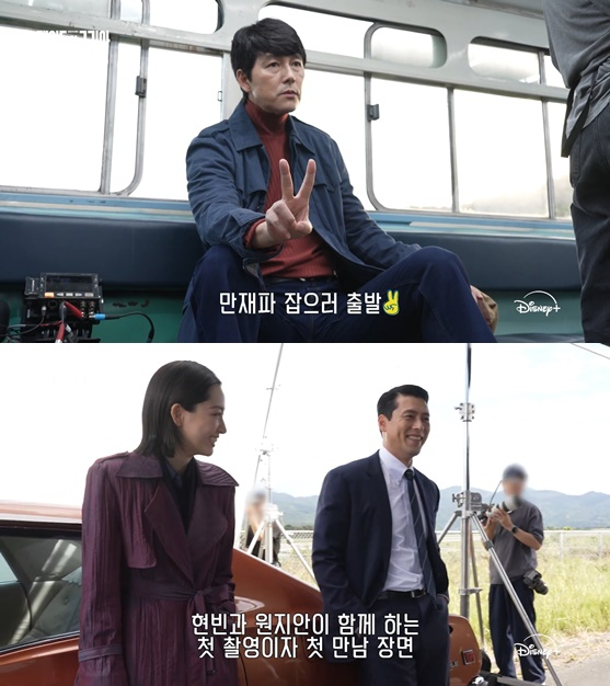 글로벌 구독자들의 반응 역시 뜨겁다. 이런가운데 공개된 1–2회 비하인드 영상은 남다른 열정으로 '메이드 인 코리아' 1, 2회 촬영에 임한 현빈, 정우성, 우도환, 서은수, 원지안, 강길우, 박용우 배우와 우민호 감독, 그리고 스태프들의 시너지를 생생하게 담아냈다. 특히, 후쿠오카행 비행기에서 펼쳐지는 액션 장면에서 현빈은 절도 있는 액션 합을 인상적으로 보여준다. 여기에 더해 정우성, 서은수, 강길우 배우는 '만재파' 추격전을 유쾌하면서도 짜릿한 긴장감이 느껴지는 장면으로 완성해, 현빈의 액션과 신선한 대조를 이루며 작품이 선사할 다채로운 재미를 기대케 한다. 우도환은 우민호 감독과 작품에 대해 깊이 있는 대화를 나누는 모습으로 눈길을 끈다. 리허설 과정에서 연기 디테일에 대해 직접 의견을 내는 현빈과 정우성의 모습은 장면 하나하나에 집중하는 배우들의 프로페셔널한 태도를 엿보게 한다. 이처럼 현장의 열기와 배우 간의 끈끈한 호흡을 고스란히 전하는 비하인드 영상은 모두가 함께 완성해나간 웰메이드 작품에 대한 기대감을 한층 끌어올린다.
