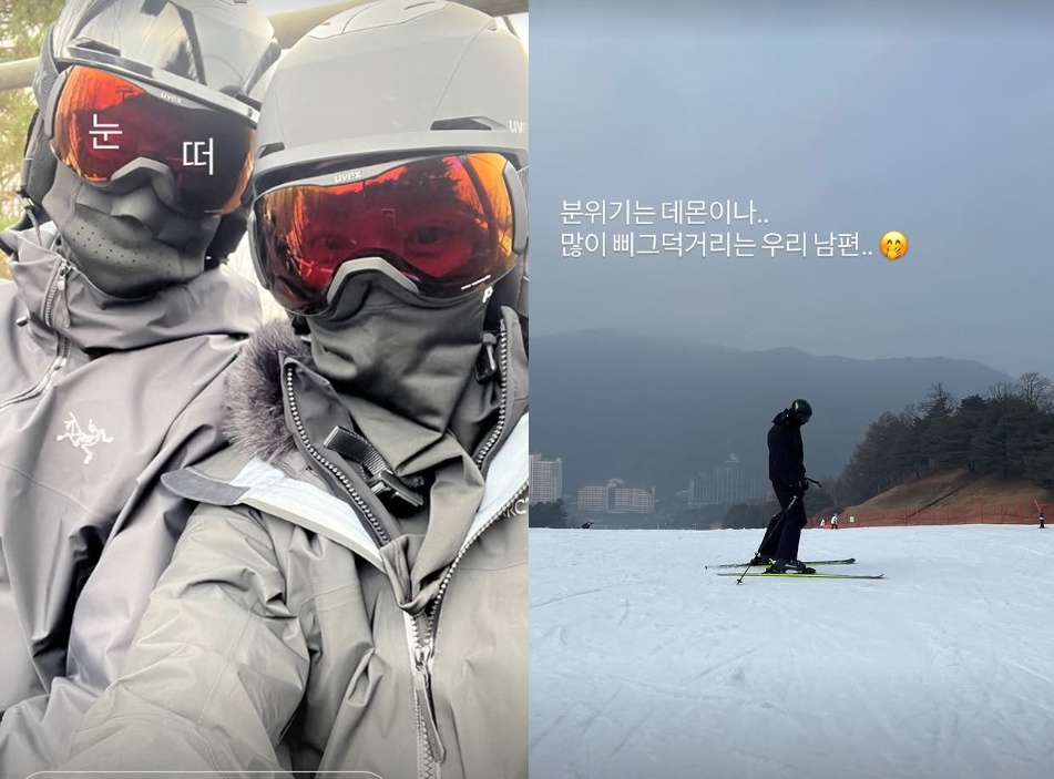 공개된 사진 속 한예슬은 "분위기는 데몬이나..많이 삐그덕거리는 우리 남편"라며 남편의 사진을 게재했다. 또한 함께 스키를 타기 위해 올라가는 모습도 공개하며 무서워하는 남편에 "눈 떠"라고 단호한 말을 전했다.