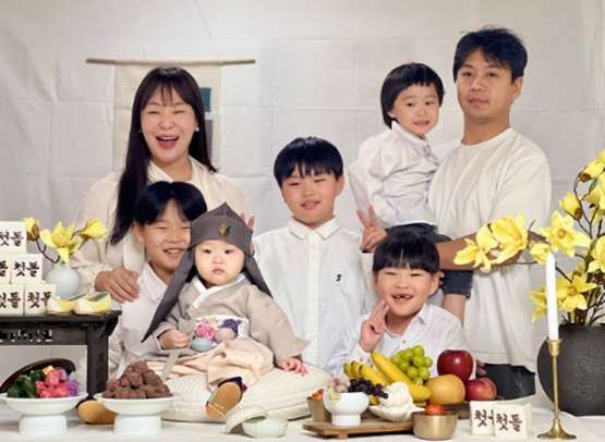 공개된 사진 속에는 돌을 맞아 한복을 입은 막내와 형들 그리고 정주리 부부의 모습이 담겨 있다. 정주리는 "집에서 간단히 돌상을 차리고 가족사진을 찍었지만 7명 다 잘나온 사진을 얻기가 쉽지 않아요. 진짜 이 사진 한장 겨우겨우"라고 설명했다.
