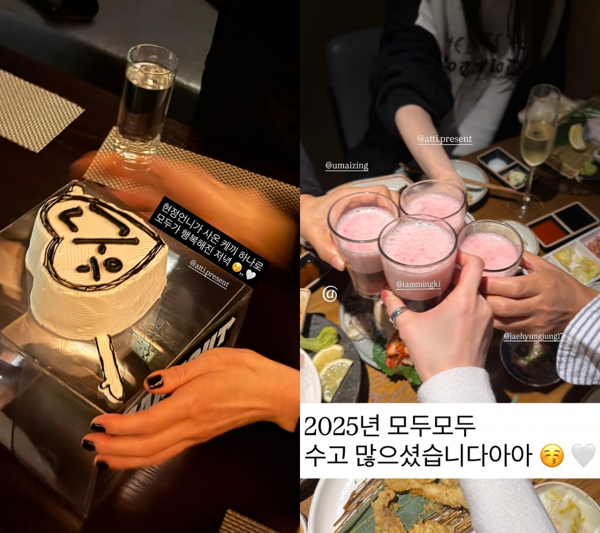이어 강민경은 고현정과 엄정화를 '퀸'이라고 칭하며 술과 음식을 나누는 사진을 공개하는가 하면, 술잔을 부딪치는 사진과 함께 "2025년 모두 수고 많으셨습니다"라고 전했다. 네 사람은 앞서 꾸준히 친분을 과시한 바 있다.