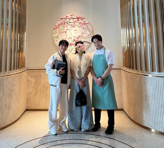 공개된 사진에는 손종원 셰프 식당에 방문한 조정식의 모습이 담겼다. 손종원 셰프, 지인과 나란히 선 조정식은 환한 미소를 짓고 있다.