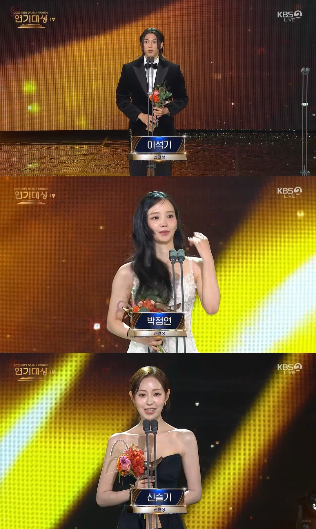 배우 이석기, 박정연, 신슬기가 신인상을 수상했다.
