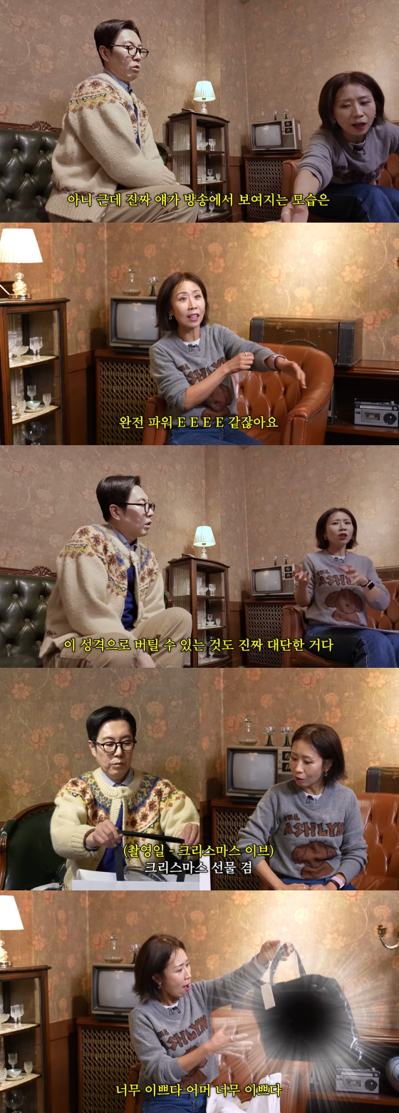 김영철은 "누나가 좋아하는 모습이 좋았다. 오늘 출연료와 상관없이 크리스마스 선물을 겸해서 준비했다"고 정선희에 대한 애정을 드러냈다.