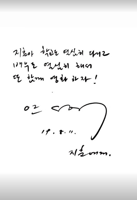 공개된 사진 속엔 정지훈이 과거 고 안성기와 출연한 영화 '사자' 프로모션 당시 모습을 담았다. 또한 그는 고인이 "지훈아, 학교도 열심히 다니고 배우도 열심히 해서 또 함께 영화하자"란 메시지와 함께 사인해준 종이도 덧붙였다.