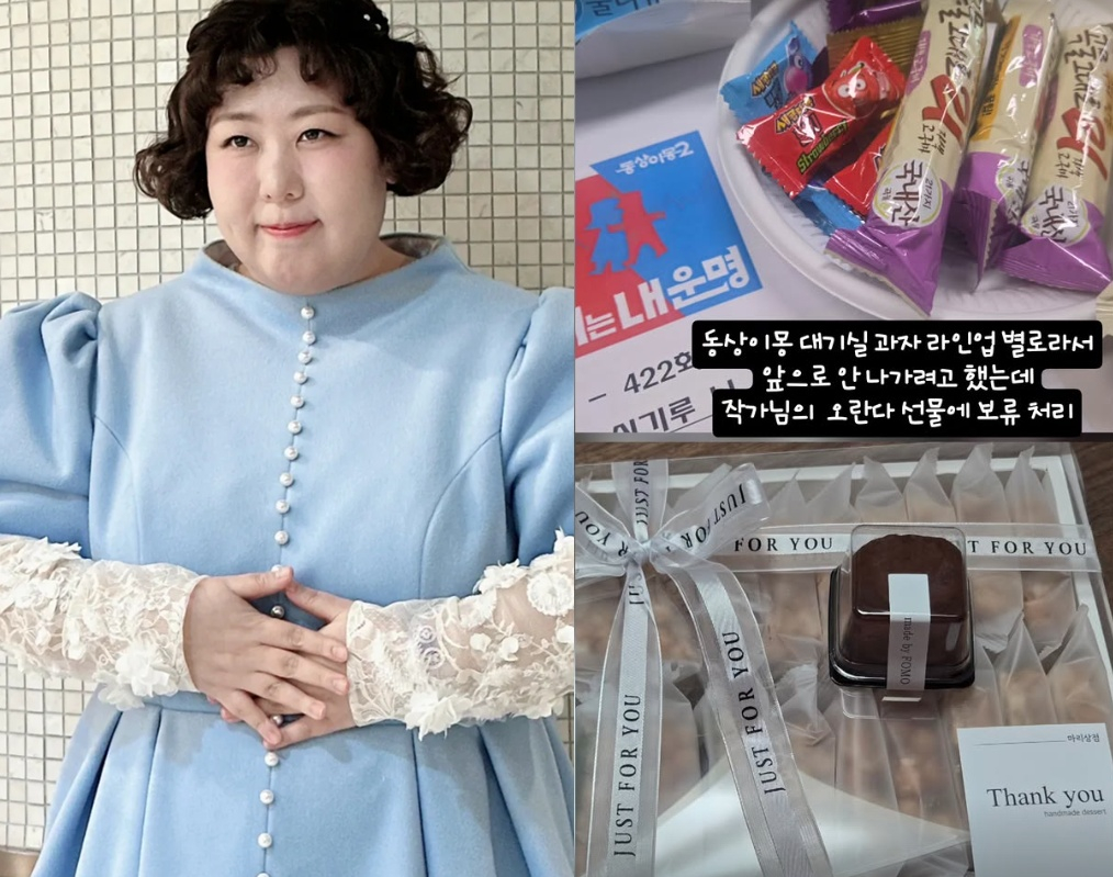 신기루는 지난 4일 "동상이몽 대기실 과자 라인업 별로라서 앞으로 안 나가려고 했는데, 작가님의 선물에 보류 처리"라는 문구와 함께 한 장의 사진을 게재했다.