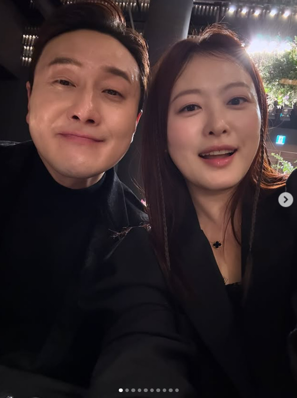 사진 속 심진화는 남편 김원효와 함께 다정한 포즈를 취하고 있는 모습. 두 사람은 블랙 컬러로 맞춘 세련된 커플룩을 선보이며 연예계 대표 잉꼬부부다운 달달한 분위기를 자아냈다.