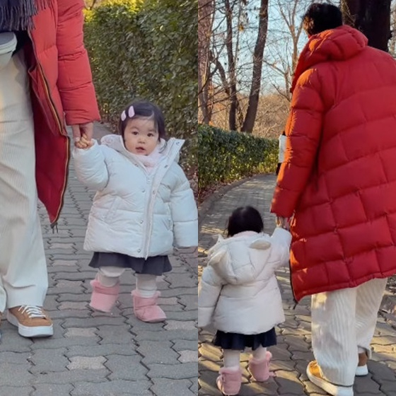 여기엔 박수홍의 15개월 딸 재이 양이 어느덧 폭풍 성장해 걸음마를 뗀 모습이 담겼다. 그는 아빠 손을 꼭 잡고 산책을 즐기는 모습으로 보는 이들을 미소 짓게 했다.