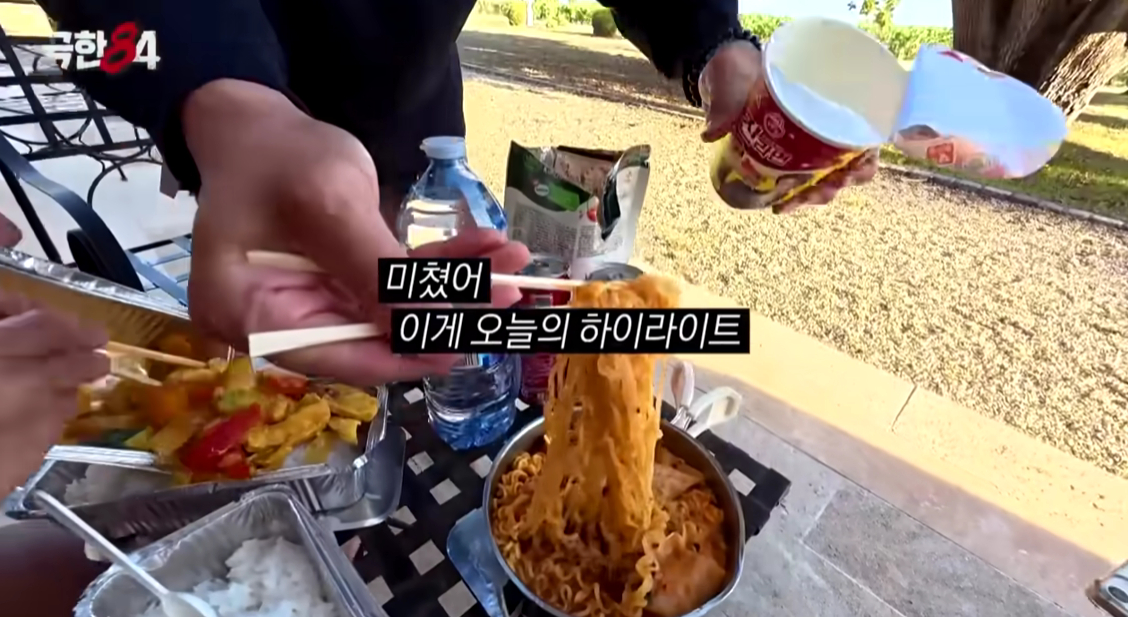 크루원들은 기안84가 끓인 라면과 현지 도시락, 김치 등을 차려놓고 식사에 나섰다. 기안84는 "지금 시간이 6시가 넘었는데 첫 끼"라며 "좀 짤 거다. 간 아예 안 보고 수프 다 때려 넣었다"라고 말했다.
