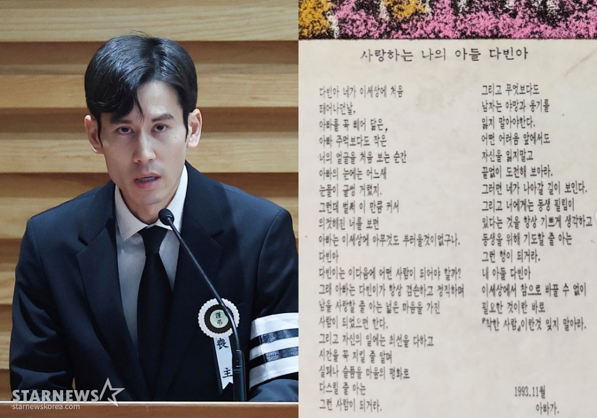 이어 '다빈이는 이 다음에 어떤 사람이 되어야 할까? 아빠는 다빈이가 항상 겸손하고 정직하며 남을 사랑할 줄 아는 넓은 마음을 가진 사람이 되었으면 한다. 자신의 일에는 최선을 다하고, 시간을 꼭 지킬 줄 알며 실패나 슬픔을 마음의 평화로 다스릴 줄 아는 그런 사람이 되거라'라는 내용이 담겼다.