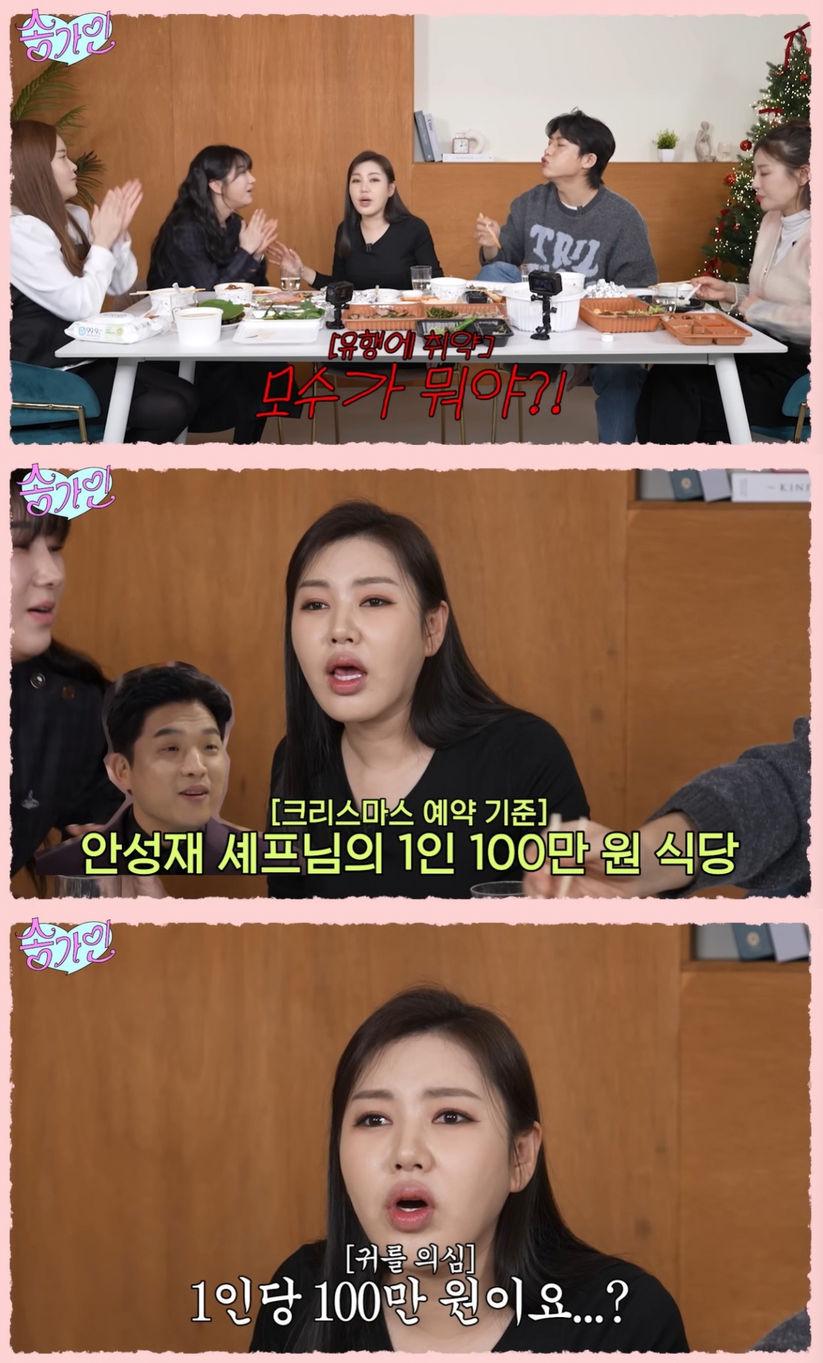 송가인 친구들은 "왜 준수만 맛있는 곳 데리고 가냐. 우리도 가고 싶다"라며 "우리는 모수 가고 싶다"라고 말했다. 송가인은 "모수가 뭐냐"라고 묻자, 제작진은 "안성재 셰프님 1인당 100만원짜리(크리스마스 기준) 식당"이라고 답했다.