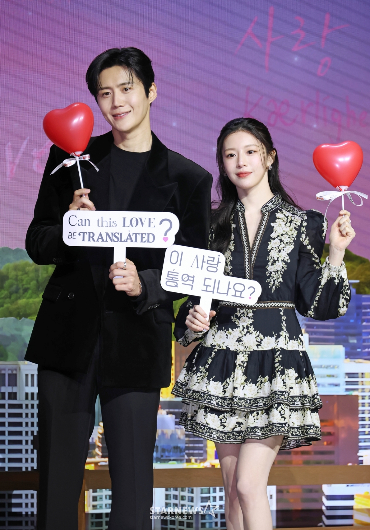 연예방송김선호-고윤정 '이 사랑 통역 되나요?'[★포토]발행 : 2026.01.13 ・ 11:38이동훈 기자배우 김선호, 고윤정이 13일 오전 서울 강남구 조선 팰리스 호텔에서 진행된 넷플릭스 오리지널 시리즈 '이 사랑 통역 되나요?' 제작발표회에 참석해 포즈를 취하고 있다.다중언어 통역사 주호진이 글로벌 톱스타 차무희의 통역을 맡게 되면서 펼쳐지는 예측불가 로맨틱 코미디 '이 사랑 통역 되나요?'는 오는 16일 공개된다. /2026.01.13<저작권자 © 스타뉴스, 무단전재 및 재배포 금지>브리핑배우 김선호와 고윤정이 넷플릭스 오리지널 시리즈 '이 사랑 통역 되나요?' 제작발표회에 참석했습니다. 이 작품은 다중언어 통역사 주호진이 글로벌 톱스타 차무희의 통역을 맡으며 벌어지는 로맨틱 코미디로, 16일 공개됩니다.추천 기사이동훈 기자기자홈좋아요연예-방송의 인기 급상승 뉴스연예-방송의 최신 뉴스