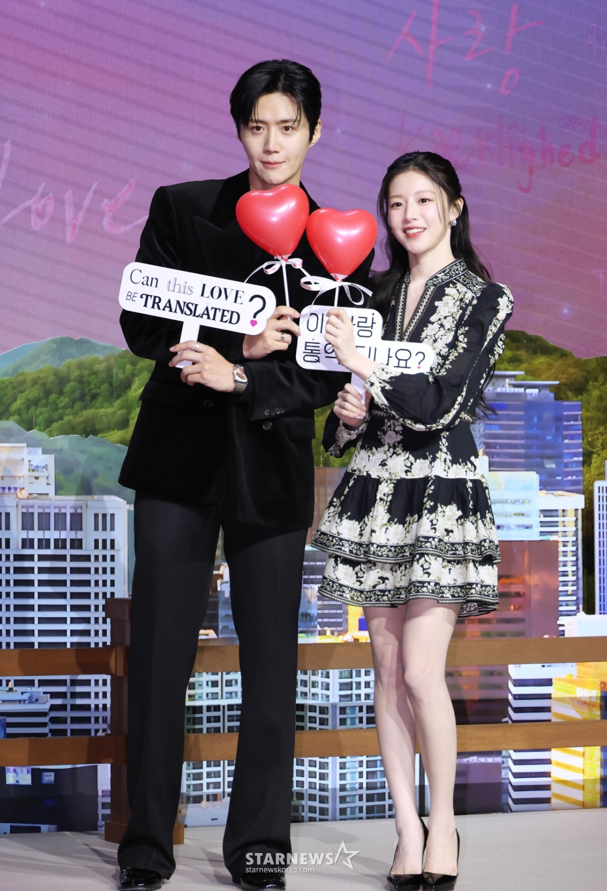 연예방송김선호-고윤저 '완벽한 비주얼 커플'[★포토]발행 : 2026.01.13 ・ 11:39이동훈 기자배우 김선호, 고윤정이 13일 오전 서울 강남구 조선 팰리스 호텔에서 진행된 넷플릭스 오리지널 시리즈 '이 사랑 통역 되나요?' 제작발표회에 참석해 포즈를 취하고 있다.다중언어 통역사 주호진이 글로벌 톱스타 차무희의 통역을 맡게 되면서 펼쳐지는 예측불가 로맨틱 코미디 '이 사랑 통역 되나요?'는 오는 16일 공개된다. /2026.01.13<저작권자 © 스타뉴스, 무단전재 및 재배포 금지>브리핑배우 김선호와 고윤정이 넷플릭스 오리지널 시리즈 '이 사랑 통역 되나요?' 제작발표회에 참석했습니다. 이 작품은 다중언어 통역사 주호진이 글로벌 톱스타 차무희의 통역을 맡으며 벌어지는 로맨틱 코미디로, 16일 공개됩니다.추천 기사이동훈 기자기자홈좋아요연예-방송의 인기 급상승 뉴스연예-방송의 최신 뉴스