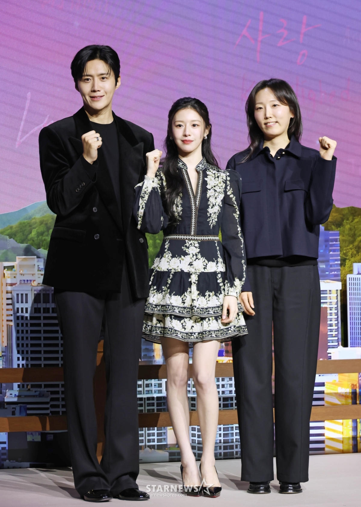연예방송'이 사랑 통역 되나요?' 믿고 보세요[★포토]발행 : 2026.01.13 ・ 11:41이동훈 기자배우 김선호, 고윤정, 유영은 감독이 13일 오전 서울 강남구 조선 팰리스 호텔에서 진행된 넷플릭스 오리지널 시리즈 '이 사랑 통역 되나요?' 제작발표회에 참석해 포즈를 취하고 있다.다중언어 통역사 주호진이 글로벌 톱스타 차무희의 통역을 맡게 되면서 펼쳐지는 예측불가 로맨틱 코미디 '이 사랑 통역 되나요?'는 오는 16일 공개된다. /2026.01.13<저작권자 © 스타뉴스, 무단전재 및 재배포 금지>브리핑배우 김선호, 고윤정, 유영이 넷플릭스 오리지널 시리즈 '이 사랑 통역 되나요?' 제작발표회에 참석했습니다. 이 작품은 다중언어 통역사 주호진이 글로벌 톱스타 차무희의 통역을 맡으며 벌어지는 로맨틱 코미디로, 1월 16일 공개됩니다.추천 기사이동훈 기자기자홈좋아요연예-방송의 인기 급상승 뉴스연예-방송의 최신 뉴스