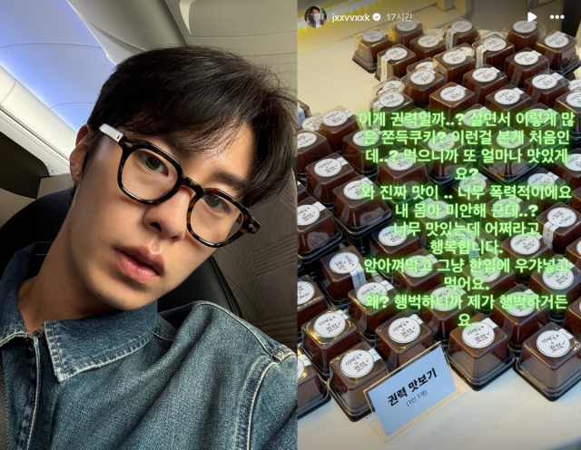 그는 "살면서 이렇게 많은 쫀득 쿠키 이런 걸 본 게 처음인데? 먹으니까 또 얼마나 맛있게요? 와 진짜 맛이 너무 폭력적이다. 내 몸아 미안해. 근데 너무 맛있는데 어쩌라고. 행복합니다. 안 아껴먹고 그냥 한입에 우갸(겨) 넣고 먹어요. 왜? 행복하니까. 제가 행복하거든요"라고 전해 부러움을 사기도 했다.