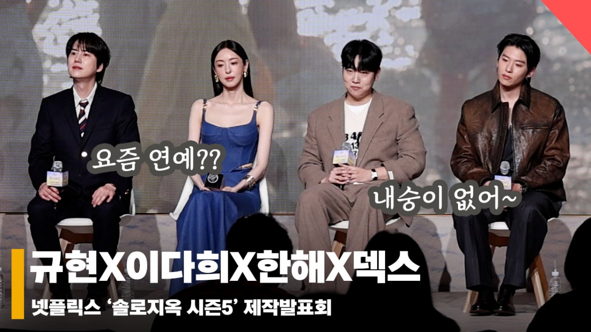 연예방송규현X이다희X한해X덱스, 'MC들이 생각하는 요즘 연예? 내숭이 없어~' [영상]발행 : 2026.01.14 ・ 11:41조회수 :오찬우 기자14일 오전 서울 마포구 호텔나루 서울 엠갤러리에서 넷플릭스 '솔로지옥 시즌5' 제작발표회가 열렸다.이날 홍진경, 이다희, 규현, 한해, 덱스가 참석했다. 2026.01.14<저작권자 © 스타뉴스, 무단전재 및 재배포 금지>브리핑추천 기사오찬우 기자기자홈좋아요연예-방송의 인기 급상승 뉴스연예-방송의 최신 뉴스AD