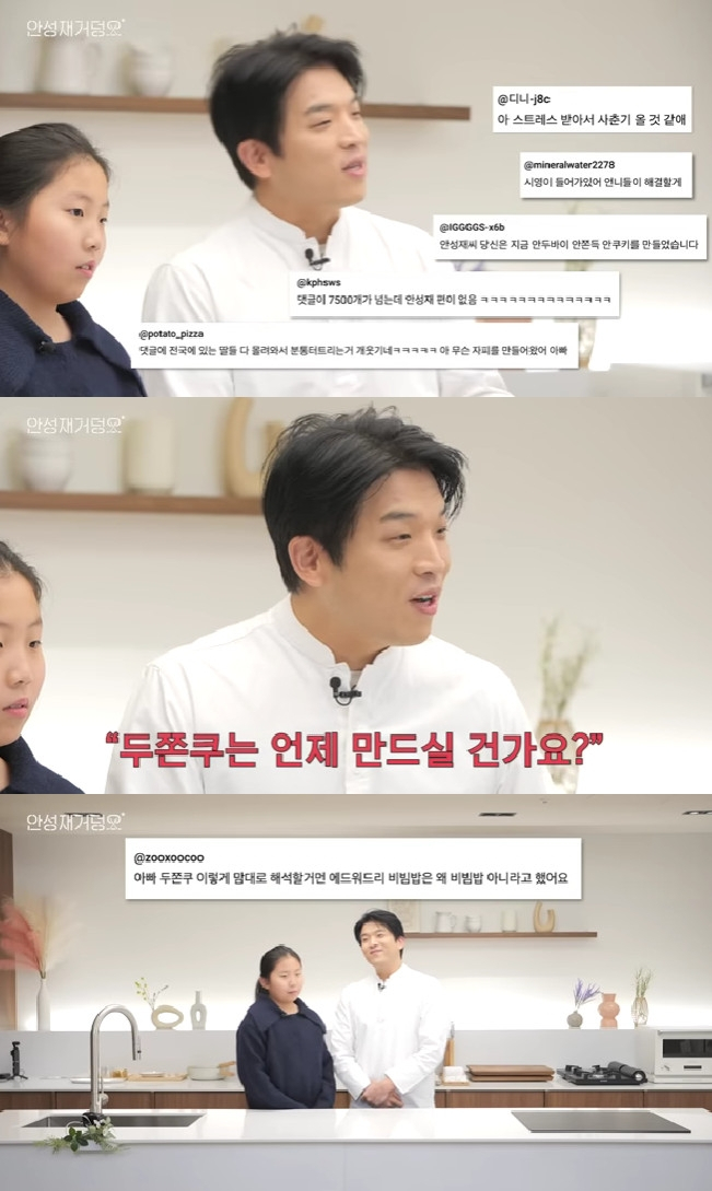안성재의 딸 시영 양은 "1만 3천 명이나 제 (편에서) 얘기를 해주니까 고마웠다. '치킨해달라고 하는데 백숙해달라는 것과 마찬가지'라는 댓글이 기억에 남았다"고 했고, 안성재는 "그렇게까지 비교할 건가"라며 머쓱해했다.