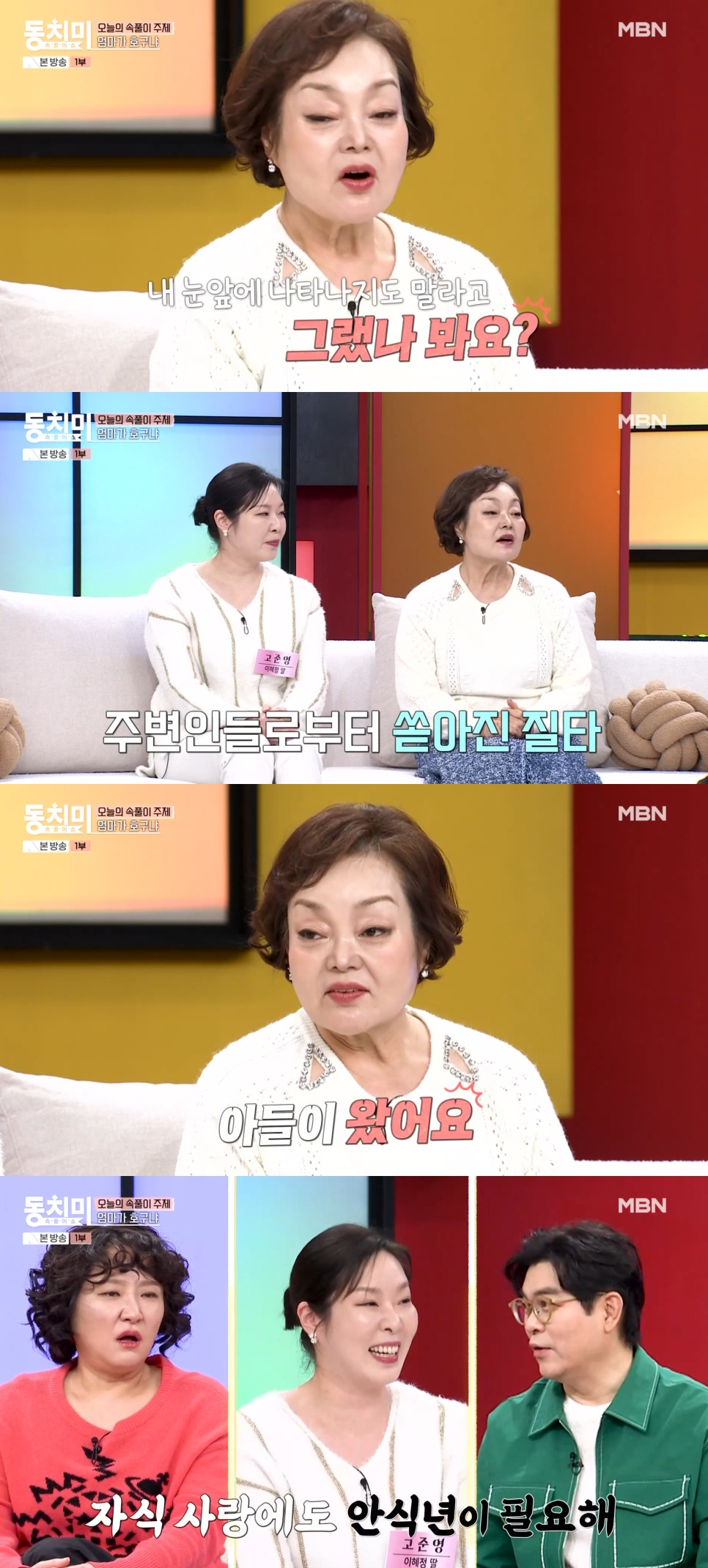 딸 고준영 씨는 "엄마가 우리 가족에게 너무 잘하다 보니까 오빠와 거리를 둔 게 좋다는 생각도 했다. 오빠를 신경 안 쓰시니까 엄마가 편안해 보이기도 한다. 본인에게 집중할 수 있는 것 같다"고 했다.