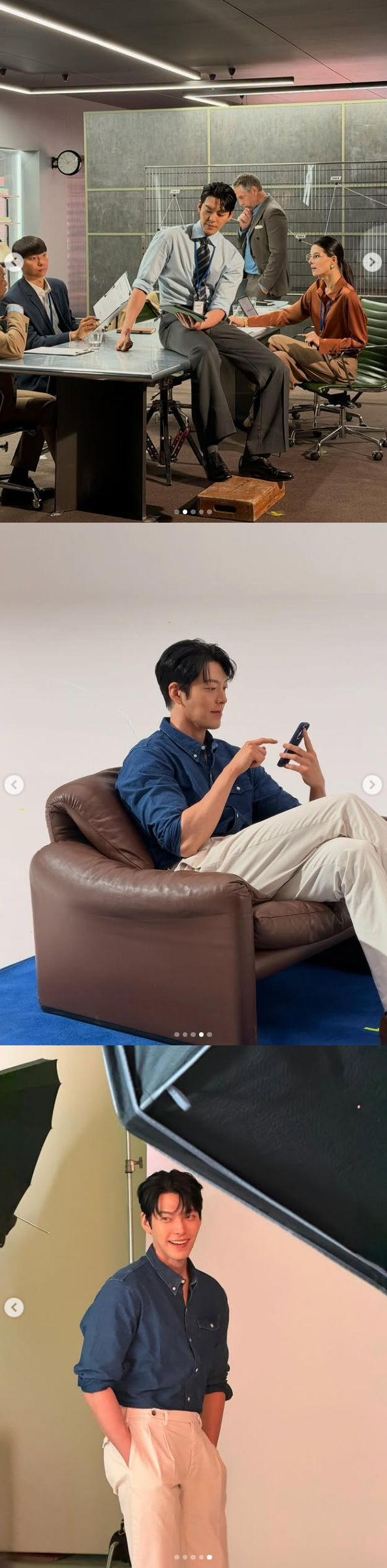사진 속 김우빈은 한 광고 촬영장에서 셔츠에 넥타이를 매치한 비즈니스 룩을 완벽하게 소화하고 있는 모습. 스마트한 엘리트 직장인 같은 분위기를 자아내고 있는 김우빈은 떡 벌어진 태평양 어깨와 우월한 기럭지를 과시하며 남다른 카리스마를 발산하고 있다.