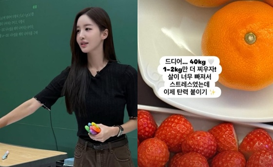 이아영 씨는 지난 20일 자신의 인스타그램 스토리에 "드디어 40kg. 1~2kg만 더 찌우자. 살이 너무 빠져서 스트레스였는데 이제 탄력 붙이기"라고 적었다.