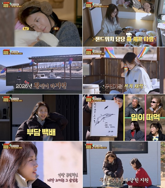 이와 함께 하지원은 장영란의 요리를 '무한 시식'하며 섬세하게 간을 짚어내는 '기미 상궁' 역할로도 활약했다. 그런데 맛있는 음식을 맛볼 때마다 터져 나오는 '돌고래 리액션'은 장영란의 오이 탕탕이 대신 추성훈의 갈비 앞에서만 터져 솔직한 매력을 배가했다. 또한 녹두전을 만들기 위해 맷돌로 콩을 가는 과정에서는 '맷돌 지옥'에 빠진 모습으로 웃음을 유발했고, 막내 가비에게 "정말 재밌다"라며 일을 넘기려다 심리를 간파당해 다시 맷돌을 돌리는 헐렁한 모습으로 무해한 웃음을 안겼다.