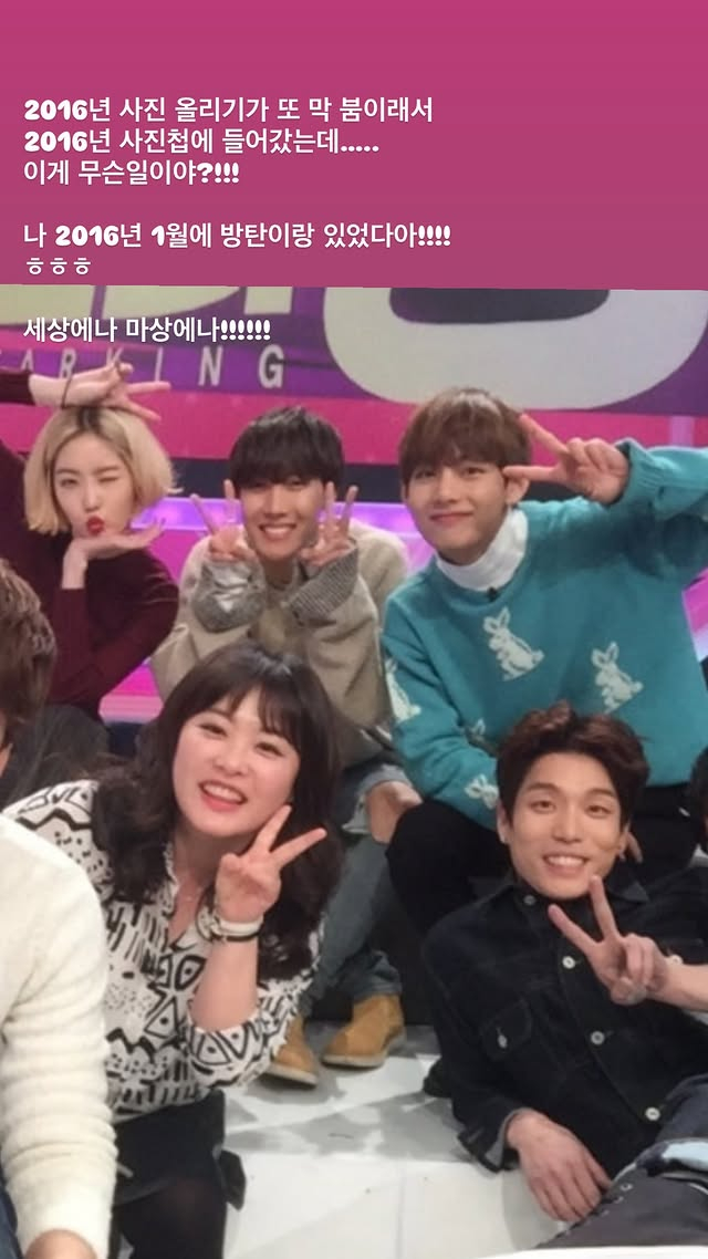 지난 21일 심진화는 개인 SNS에 '2016년 사진 올리기가 또 막 붐이래서 2016년 사진첩에 들어갔는데 이게 무슨 일이야?! 나 2016년 1월에 방탄이랑 있었다! 세상에나 마상에나!'라며 방탄소년단과 함께 찍었던 셀카를 게재했다.