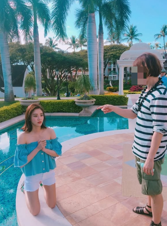 공개된 사진에는 스태프들과 함께 화기애애한 시간을 보내고 있는 손담비의 모습이 담겨 있다. 특히 손담비는 수영장 앞에서 무릎을 꿇고 스태프와 유쾌한 상황극을 펼치고 있는 모습이 포착돼 눈길을 끈다.