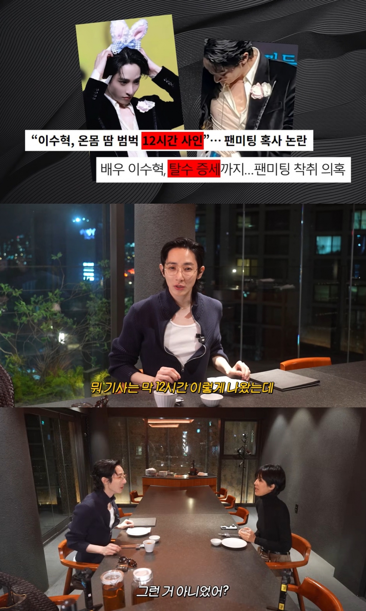 모델 겸 배우 이수혁이 12시간 팬미팅 혹사 의혹에 대해 해명했다.