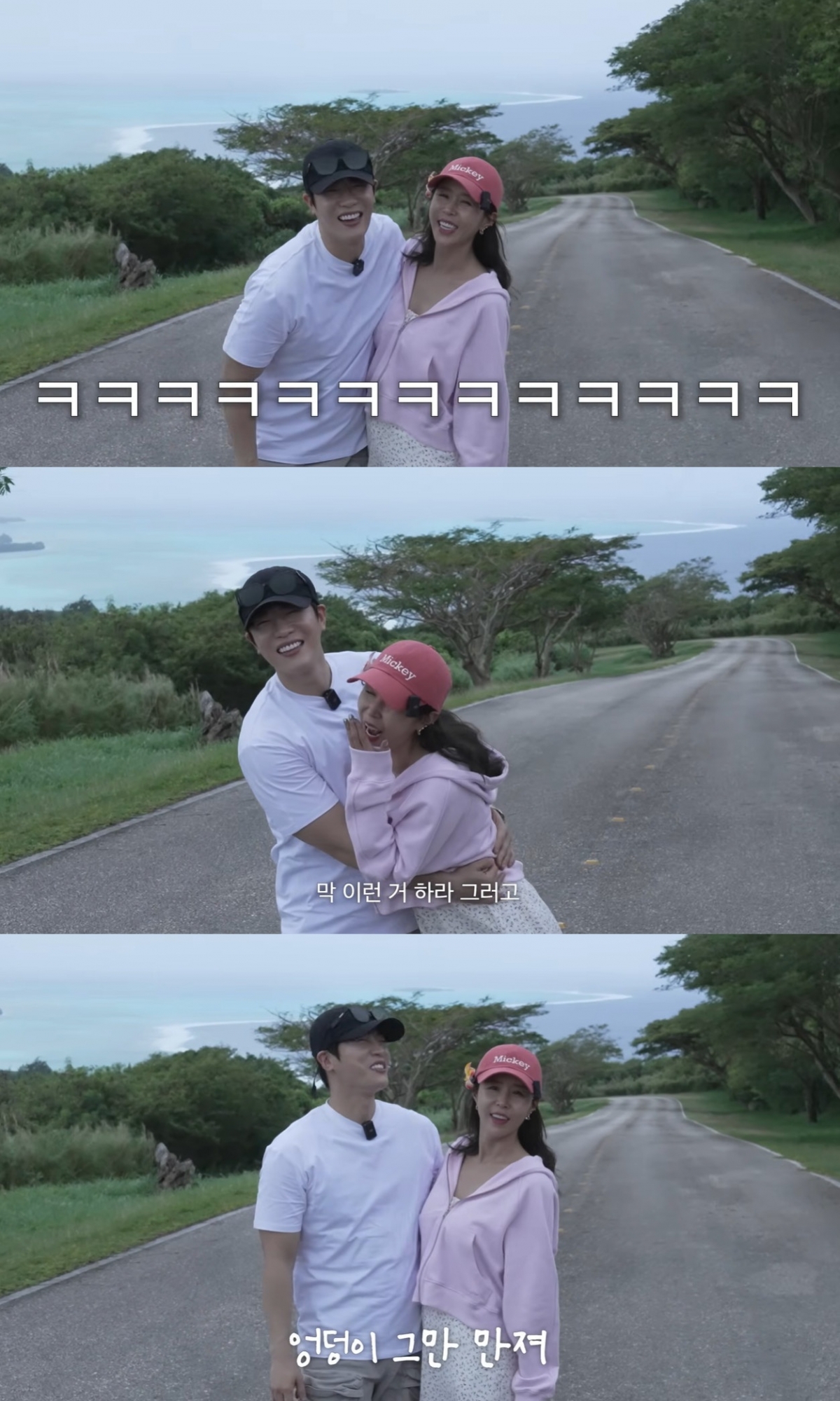 길거리를 걷던 신지는 문원과 투 샷을 찍었다. 그는 "웨딩 촬영할 때 이런 거 찍지 않나. 서로를 바라보라고 하고 이런 거 하라고 하고"라고 하자, 문원은 "엉덩이 그만 만져라"고 말해 달콤한 분위기를 조성했다.