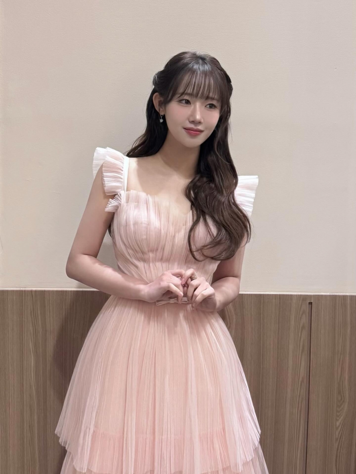 그는 연한 핑크색 드레스를 입고 청순한 매력을 과시했다. 이 가운데 최유정은 과거에 비해 볼살이 없어져 갸름한 얼굴을 나타냈다.