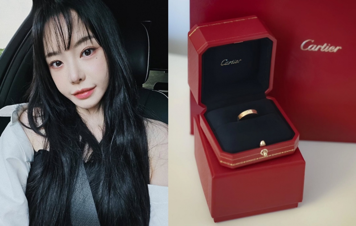 공개된 사진 속엔 서유리가 선물 받은 명품 브랜드 까르띠에 반지가 놓여있다. 그가 연인에게 결혼 프러포즈를 받은 건지 궁금증을 자아낸다.